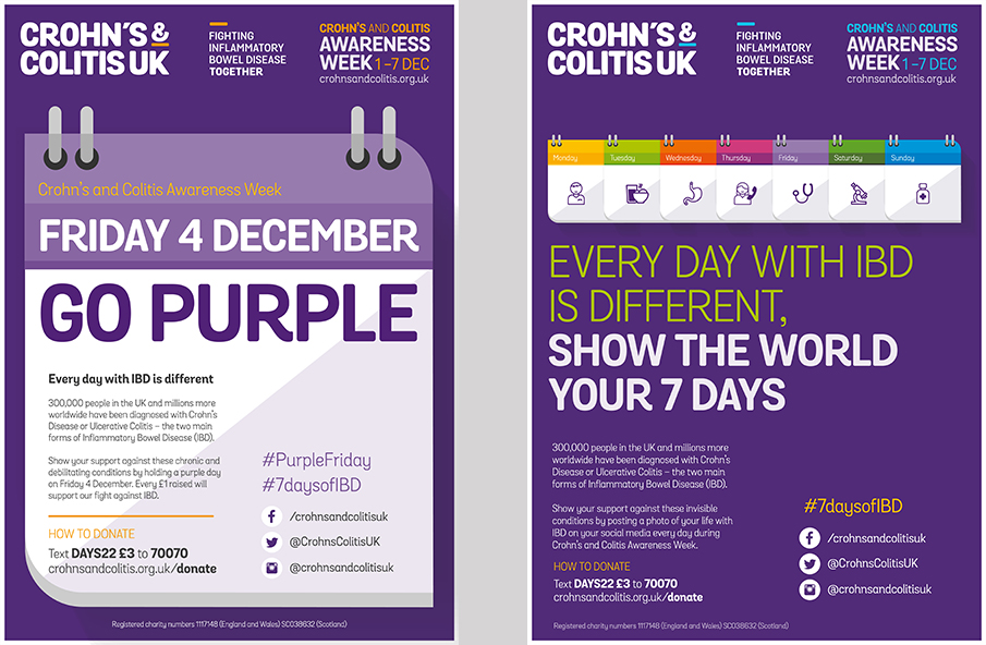 I was very honoured to have been invited to work with Crohn's and Colitis UK on their strategy and new identity project. This is an amazing and inspiring charity that raises awareness and helps people who suffer from severe chronic illness in the UK. I also designed the social media assets and create the Identity for World IBD day and IBD Awareness Week for Crohn’s and Colitis UK.