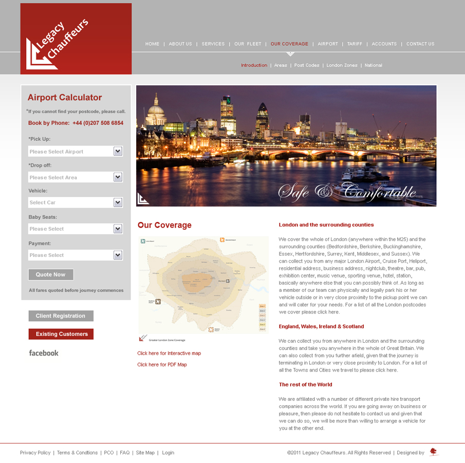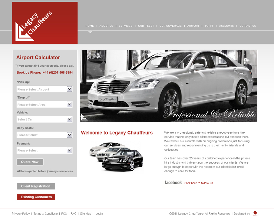 Legacy Chauffeurs has a reputation for quality and reliability where time and promptness is vital. Along with excellent knowledge of London and the surrounding counties, Legacy Chauffeurs has grown and now plan to expand their customer base. They required a new Identity and website that reflected their new services. (2011: Origin Multimedia Design, Identity & Web)